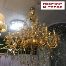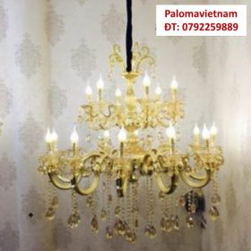 Nhắc đến đèn chùm nến thì chúng ta sẽ luôn nghĩ đến vẻ đẹp cổ điển, sang trọng. Đặc biệt khi được kết hợp cùng pha lê thì những mẫu đèn này càng trở lên đẳng cấp hơn. Khoác lên mình màu vàng tinh tế, trang nhã, những dây pha lê được gắn với thân đền đầy quyến rũ và nổi bật. Chiếc đèn này mang đến cảm giác “chanh sả” bậc nhất. Đồng thời, những ngọn nến được làm từ chất liệu pha lê cao cấp mang lại cảm giác ấm áp, dễ chịu cho người sử dụng